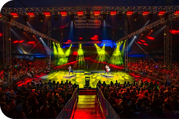 Garden Bros Nuclear Circus delivers non-stop action with 60+ world-class performers, a 5-ring layout for unbeatable views, concert-style lights and sound, and a smooth, fast-moving show built for all ages. It’s a modern, climate-controlled Big Top experience with real talent and zero filler — just pure entertainment.